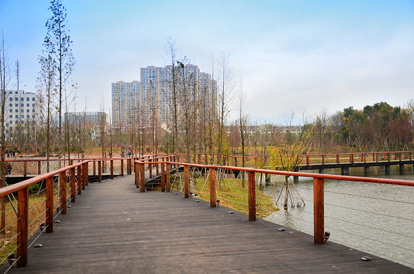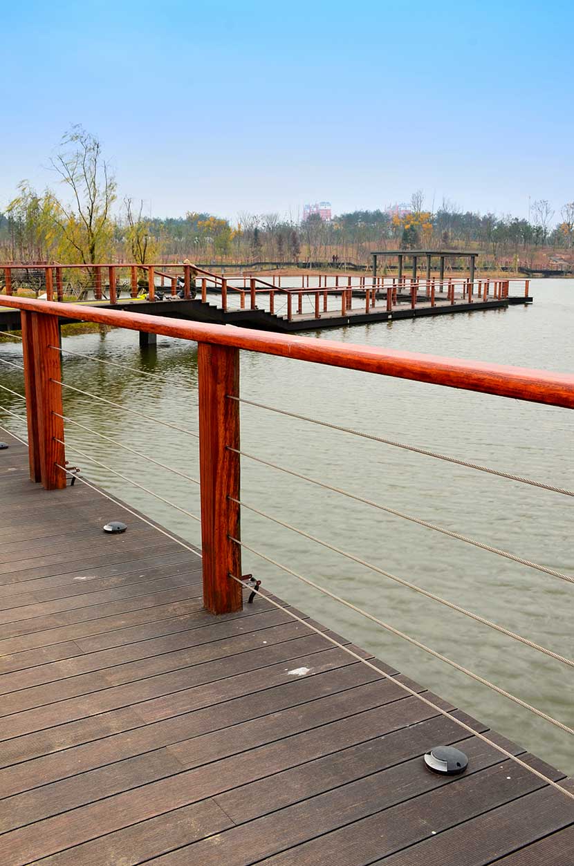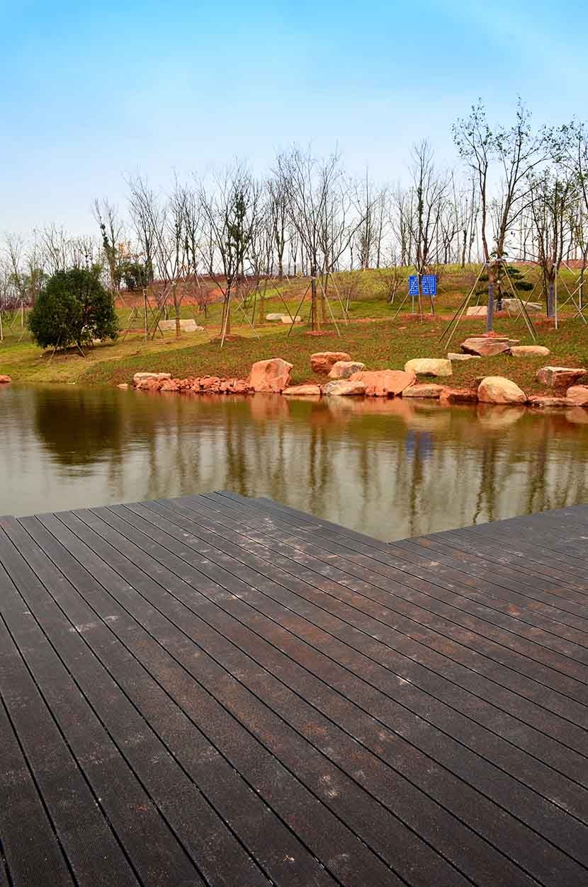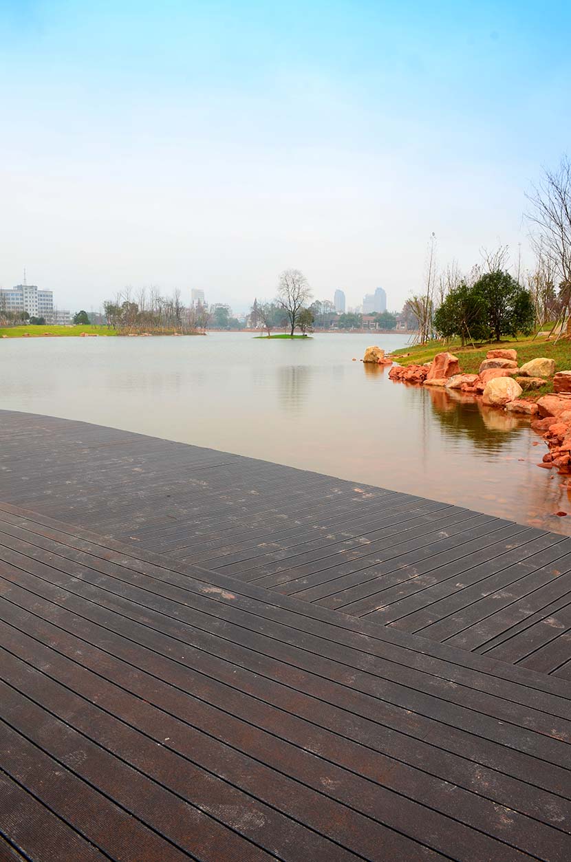 金獅湖公園位于浙江金華市北部的浦江縣,面積1265畝(水域面積368畝),總投資48億元。項(xiàng)目規(guī)劃為一環(huán)(金獅湖慢行游憩環(huán))、三片(人文體驗(yàn)景觀風(fēng)貌片、動感都市景觀風(fēng)貌片、自然生態(tài)景觀風(fēng)貌片)及五區(qū)(工業(yè)遺存展示區(qū)、書香文創(chuàng)休閑區(qū)、康體活動休閑區(qū)、濕地田園游覽區(qū)、濱湖廣場活力區(qū))。公園環(huán)湖景觀步道全部使用桃花江戶外防腐竹地板,打造金華的“小西湖”。