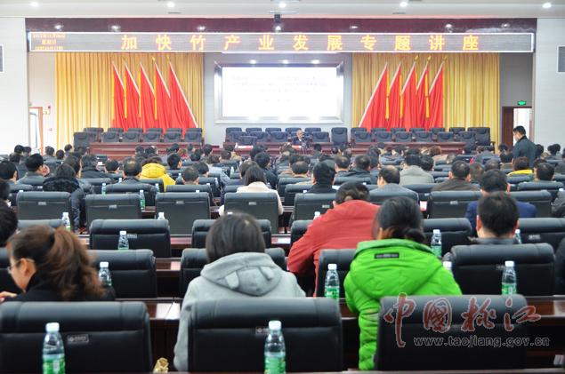 12月9日,黨政大樓附屬樓三樓會議室里,一場高規(guī)格的加快竹產(chǎn)業(yè)發(fā)展專題講座在這里舉行??h委副書記何軍田主持,縣領(lǐng)導(dǎo)唐學(xué)文、李質(zhì)彬、馬文才、陳震宇、胡國清、肖立新、張亮榮、劉武出席。副處級以上干部,縣直單位、鄉(xiāng)鎮(zhèn)負(fù)責(zé)人,林業(yè)系統(tǒng)工作者共400余人濟濟一堂,認(rèn)真聆聽了中國工程院院士、中國竹子加工利用首席科學(xué)家、南京林業(yè)大學(xué)教授張齊生和國家林業(yè)局竹子研發(fā)中心科研處處長、竹筍專家、高級工程師吳良如精彩而豐富的竹產(chǎn)業(yè)講課。