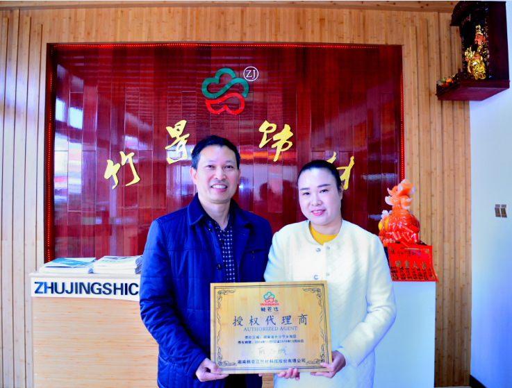 2016年12月10日,湖南桃花江竹材科技股份有限公司寧鄉(xiāng)總代理——寧鄉(xiāng)竹景飾材實業(yè)有限公司隆重開業(yè)。開業(yè)當日,桃花江竹材科技薛志成董事長親臨現場,為代理商熊杰紅總經理頒發(fā)授權代理商牌照,并祝賀生意興?。?br/> 竹景飾材實業(yè)有限公司位于寧鄉(xiāng)二環(huán)南路玉潭鎮(zhèn)豪德建材市場,展示面積200多平米,展廳全部使用湖南桃花江的竹材裝飾,全面展示了桃花江戶外防腐竹材和室內裝飾竹集成材的各類樣品。 開業(yè)當天,代理商負責人熊杰紅女士在接受寧鄉(xiāng)電視臺采訪時被問及為何選擇代理桃花江竹材產品時說:竹材產品本身最大的特點就是環(huán)保,這是大家公認的事實;目前戶外竹材和裝飾竹材并未大量普及,擁有很大的市場前景;而且桃花江竹材是自然竹材的選擇。