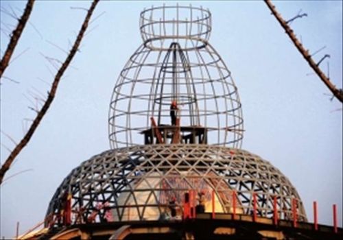 可不要認(rèn)為用竹藤做建筑材料是很簡(jiǎn)單的事。在以“零化學(xué)物質(zhì)”著稱(chēng)的印度館內(nèi)使用了世界上最大的竹制穹頂:一根跨度逾三十四米的頂梁,要用竹材加工出弧度來(lái),其難度可想而知。竹子最終能夠“挑大梁”,實(shí)際上是利用現(xiàn)代工藝和科技對(duì)傳統(tǒng)材料進(jìn)行再加工的結(jié)果。